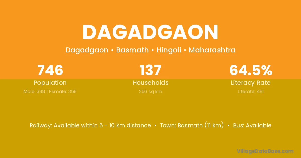 Loha (20 km) is the nearest town to Dagadgaon village for major economic activities and is located approximately 20 km away.