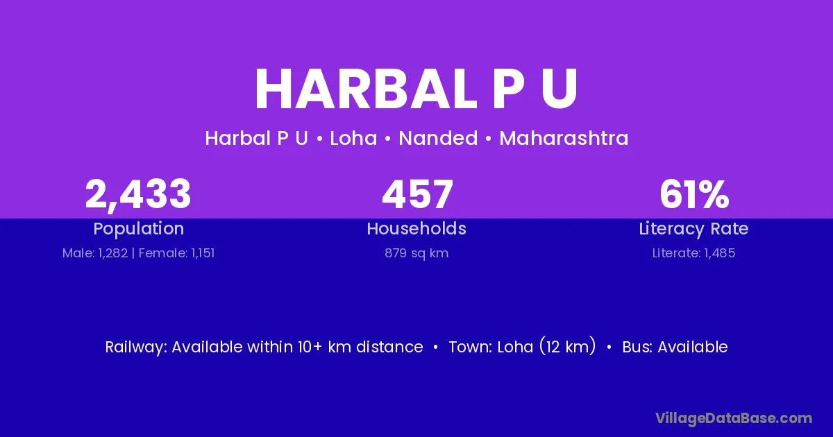 Loha (12 km) is the nearest town to Harbal P U village for major economic activities and is located approximately 12 km away.