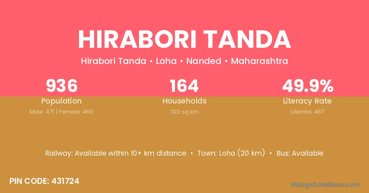 Loha (20 km) is the nearest town to Hirabori Tanda village for major economic activities and is located approximately 20 km away.