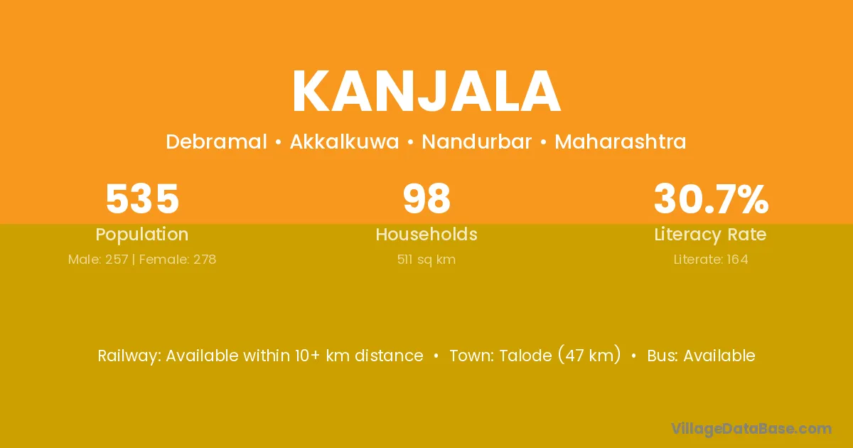 Nanded (30 km) is the nearest town to Kanjala village for major economic activities and is located approximately 30 km away.