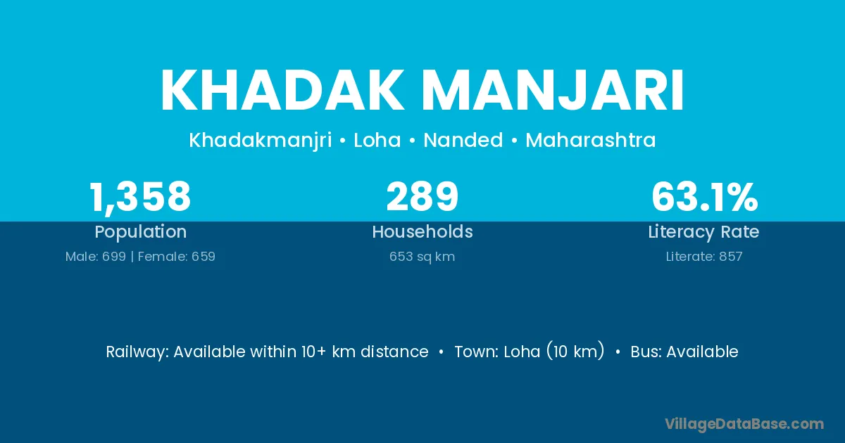 Loha (10 km) is the nearest town to Khadak Manjari village for major economic activities and is located approximately 10 km away.
