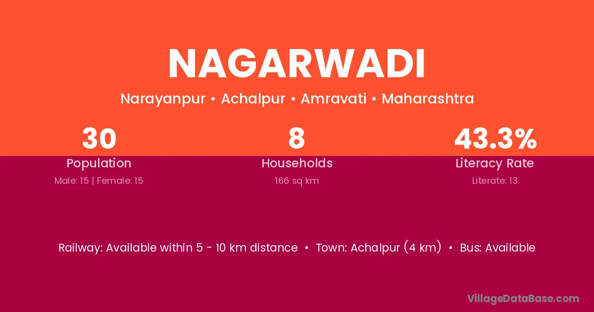 Loha (20 km) is the nearest town to Nagarwadi village for major economic activities and is located approximately 20 km away.