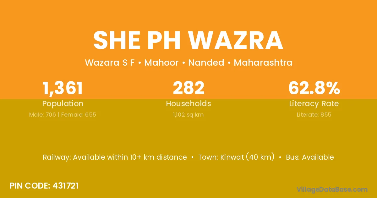 Kinwat (40 km) is the nearest town to She Ph Wazra village for major economic activities and is located approximately 40 km away.