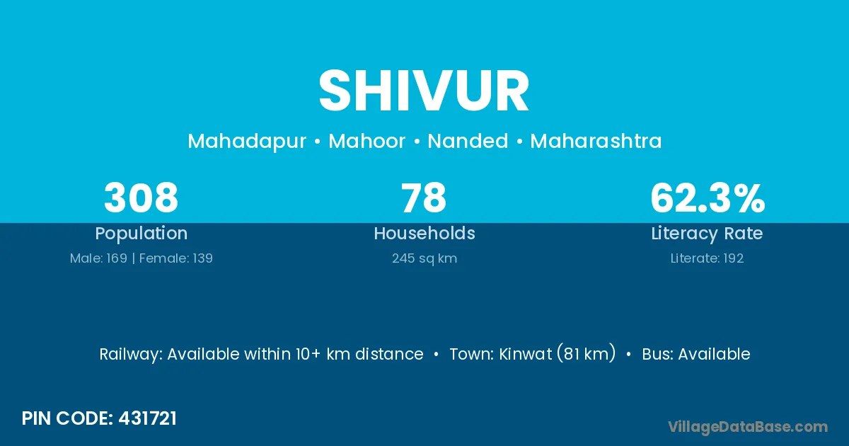 Kinwat (81 km) is the nearest town to Shivur village for major economic activities and is located approximately 81 km away.