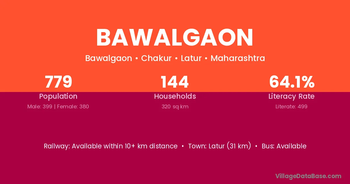 Mukhed (20 km) is the nearest town to Bawalgaon village for major economic activities and is located approximately 20 km away.