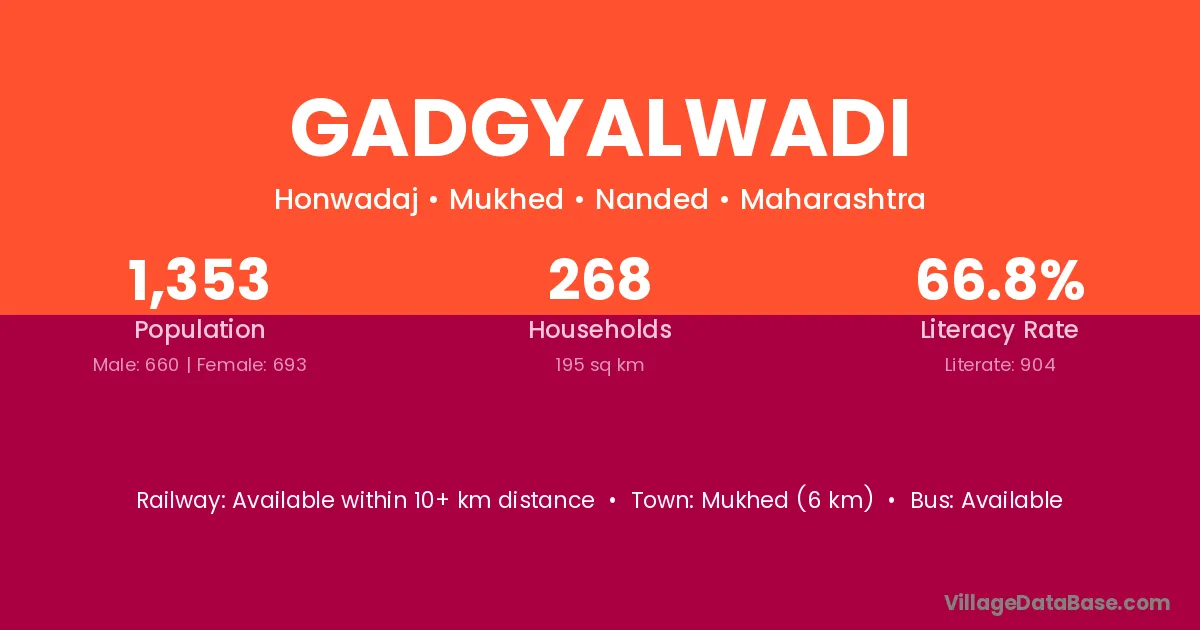 Gadgyalwadi village has a total population of 1,353 people, of which 660 are males and 693 are females.