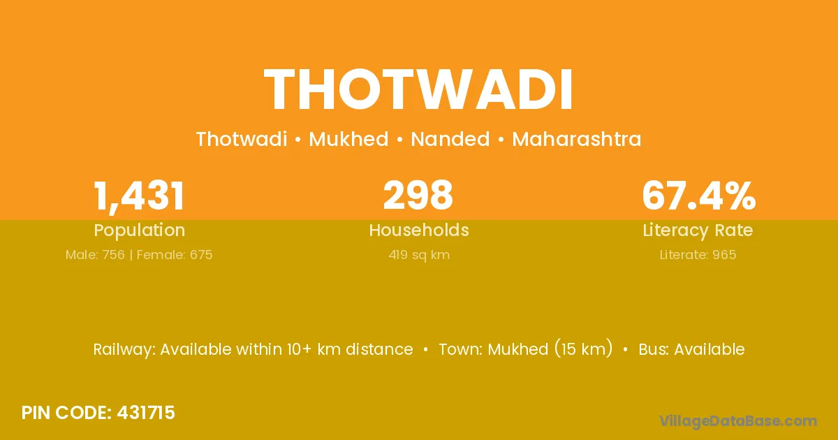 Thotwadi village has a total population of 1,431 people, of which 756 are males and 675 are females.