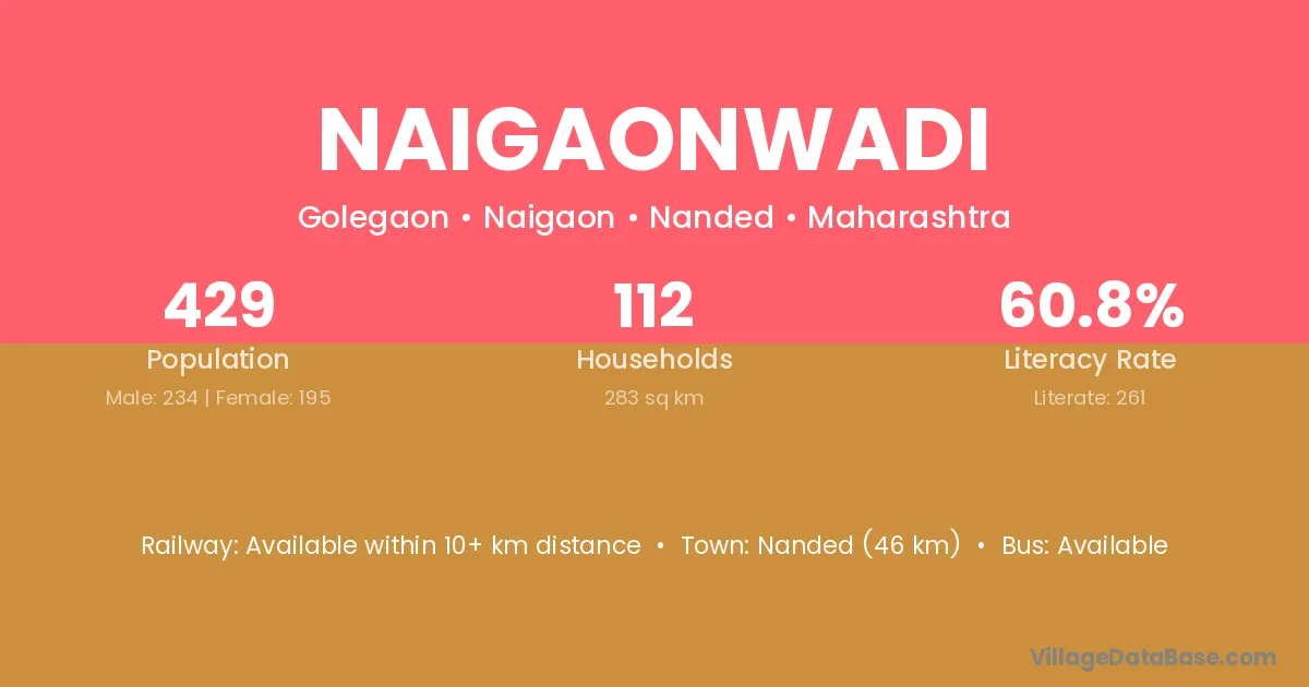 Naigaonwadi village has a total population of 429 people, of which 234 are males and 195 are females.