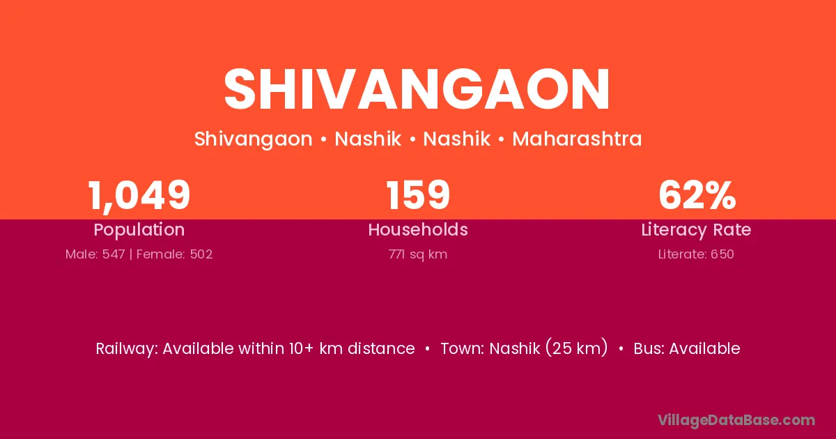 Mudkhed (10 km) is the nearest town to Shivangaon village for major economic activities and is located approximately 10 km away.