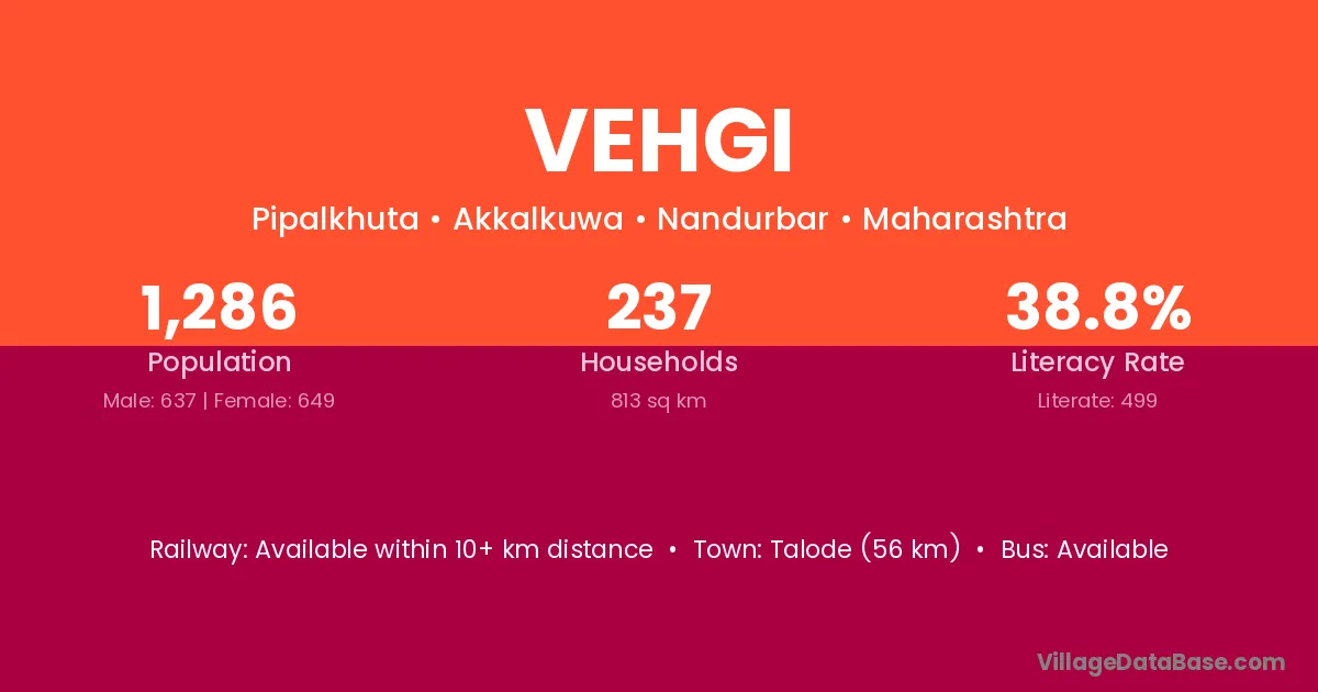 Vehgi village is located in the Akkalkuwa Tehsil of the Nandurbar district in Maharashtra .