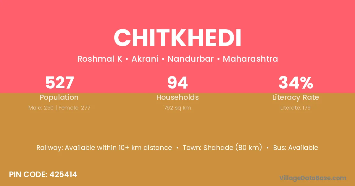 According to Census 2011 information, the village code of Chitkhedi village is 425414.
