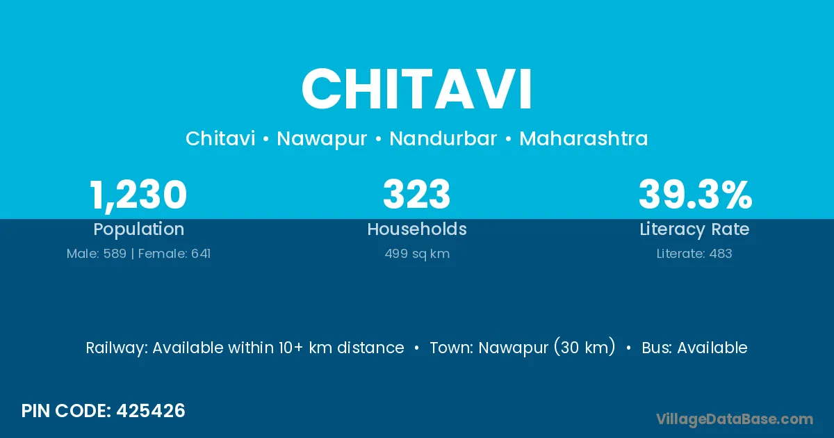 Nawapur (30 km) is the nearest town to Chitavi village for major economic activities and is located approximately 30 km away.