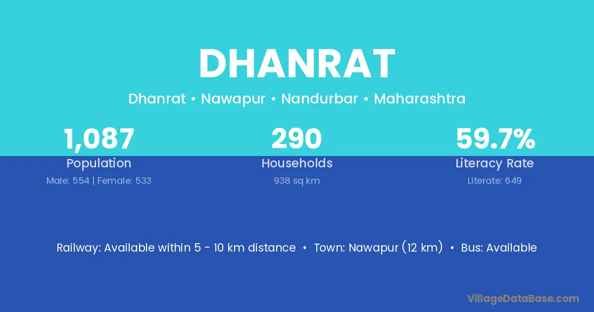 Nawapur (12 km) is the nearest town to Dhanrat village for major economic activities and is located approximately 12 km away.