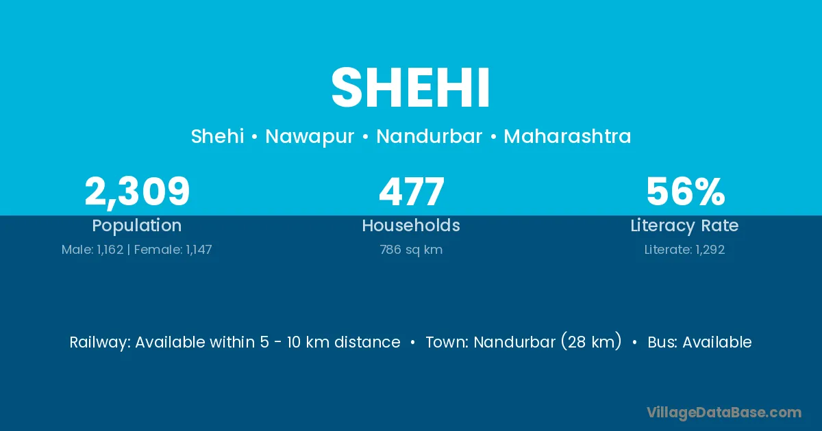 Nandurbar (28 km) is the nearest town to Shehi village for major economic activities and is located approximately 28 km away.