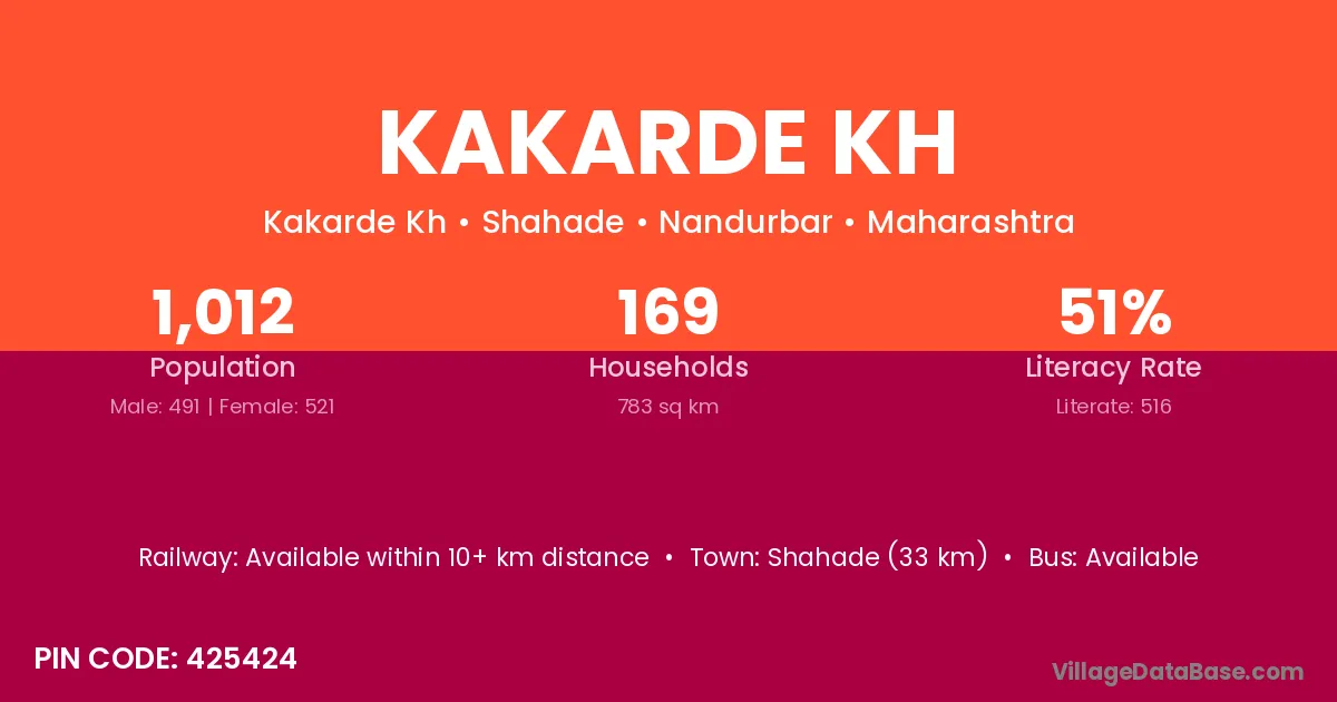 Kakarde Kh village has a total population of 1,012 people, of which 491 are males and 521 are females.