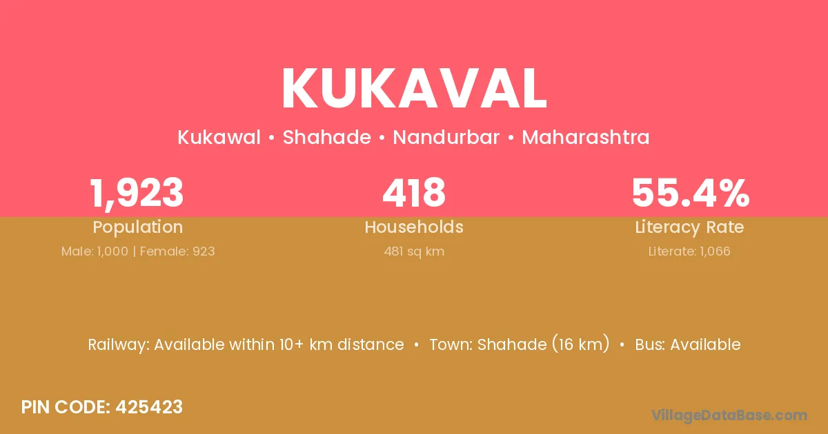Shahade (16 km) is the nearest town to Kukaval village for major economic activities and is located approximately 16 km away.