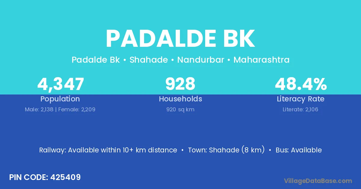 Shahade (8 km) is the nearest town to Padalde Bk village for major economic activities and is located approximately 8 km away.
