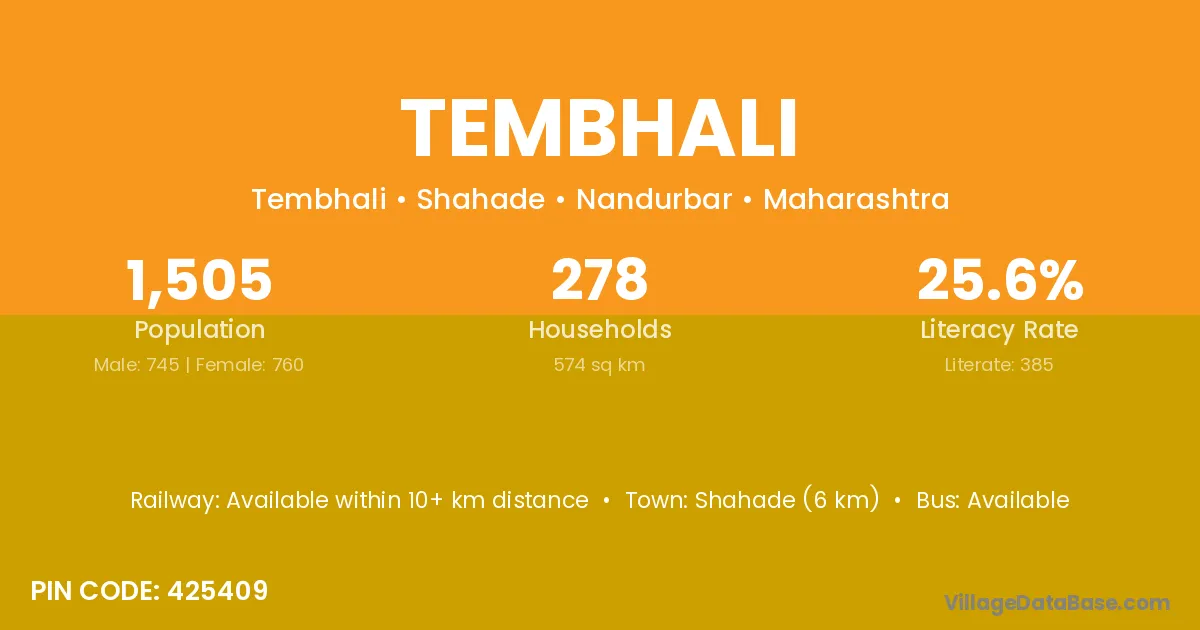Shahade (6 km) is the nearest town to Tembhali village for major economic activities and is located approximately 6 km away.