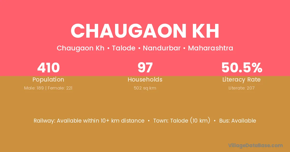 Chaugaon Kh village has a total population of 410 people, of which 189 are males and 221 are females.