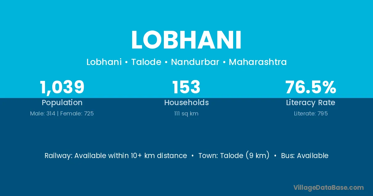 Talode (9 km) is the nearest town to Lobhani village for major economic activities and is located approximately 9 km away.