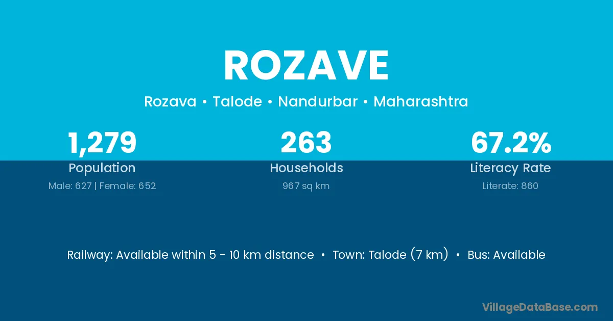 Talode (7 km) is the nearest town to Rozave village for major economic activities and is located approximately 7 km away.