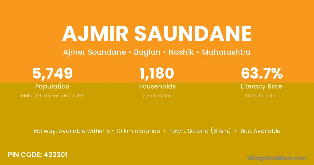Satana (8 km) is the nearest town to Ajmir Saundane village for major economic activities and is located approximately 8 km away.