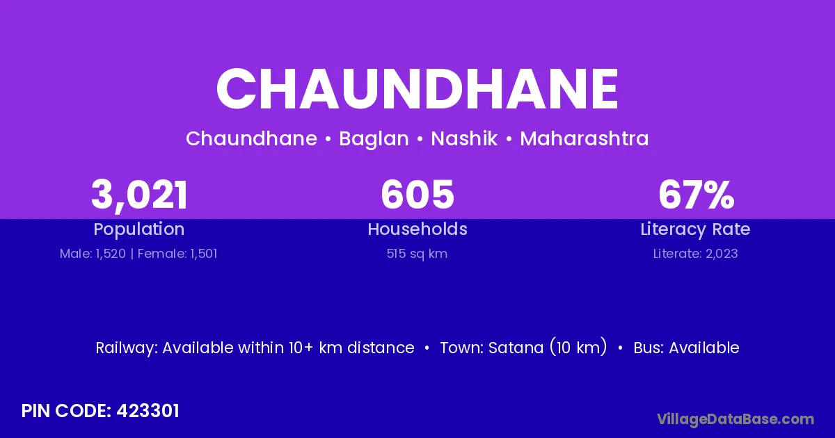 Satana (10 km) is the nearest town to Chaundhane village for major economic activities and is located approximately 10 km away.