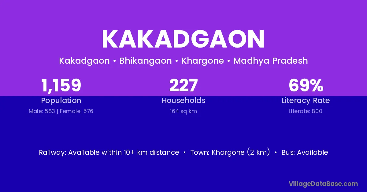 Satana (24 km) is the nearest town to Kakadgaon village for major economic activities and is located approximately 24 km away.