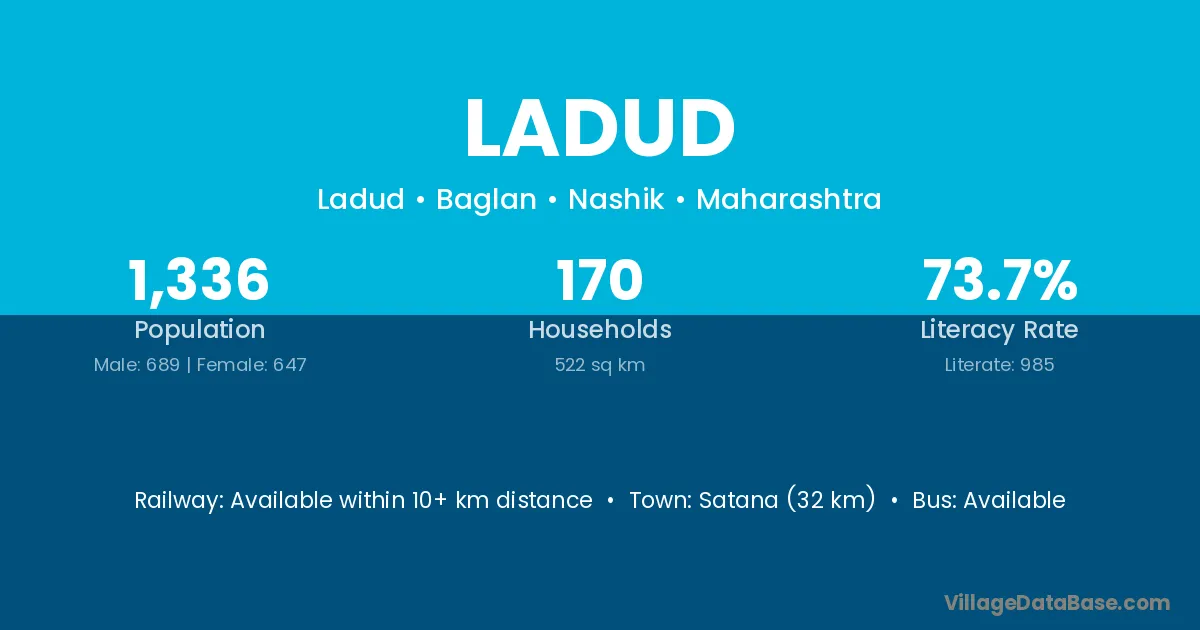 Satana (32 km) is the nearest town to Ladud village for major economic activities and is located approximately 32 km away.