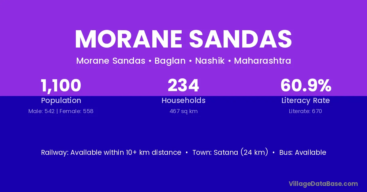 Morane Sandas village has a total population of 1,100 people, of which 542 are males and 558 are females.