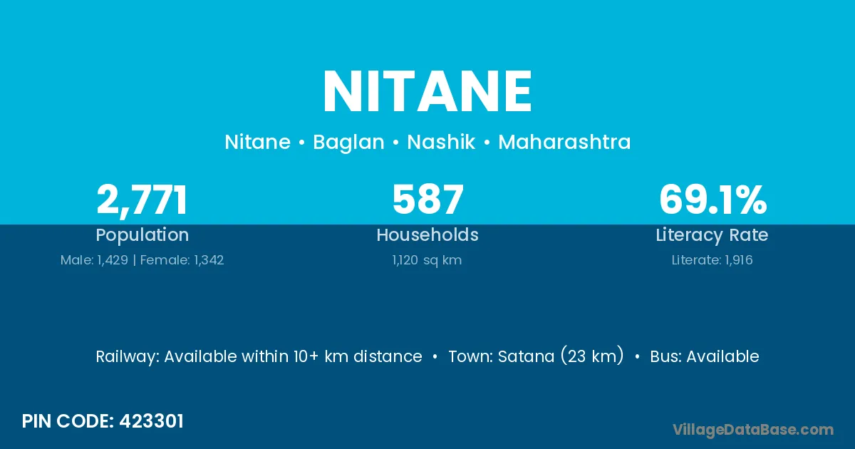 Satana (23 km) is the nearest town to Nitane village for major economic activities and is located approximately 23 km away.