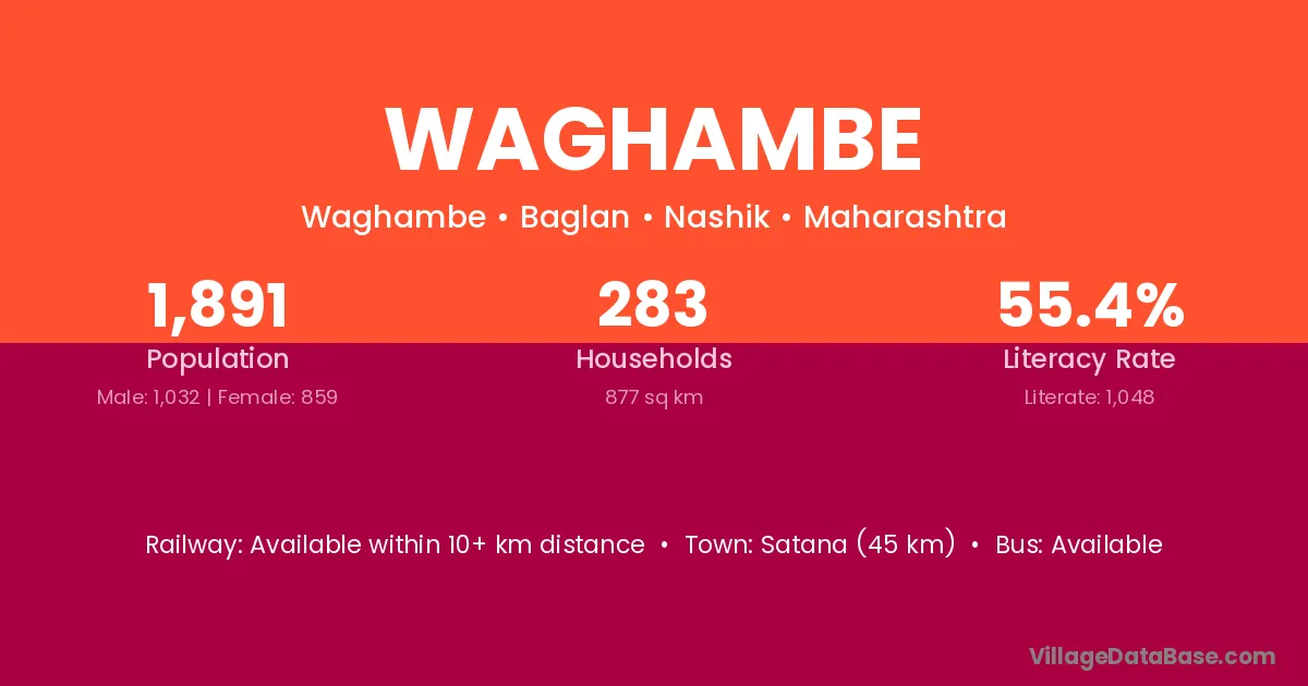 Satana (45 km) is the nearest town to Waghambe village for major economic activities and is located approximately 45 km away.