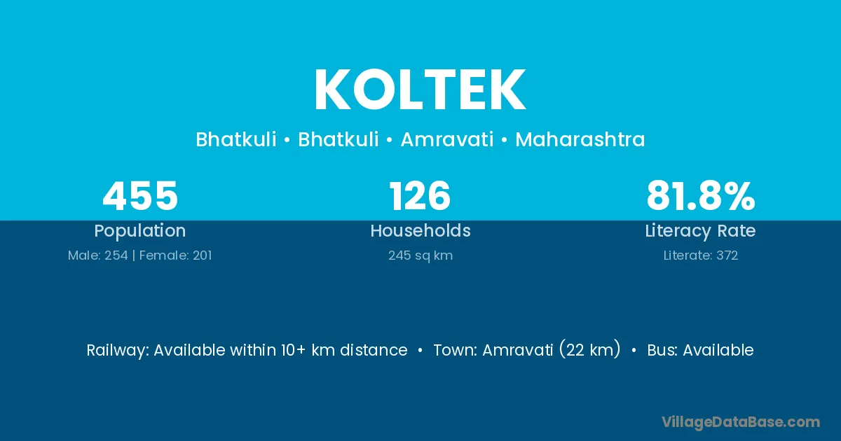 Manmad (22 km) is the nearest town to Koltek village for major economic activities and is located approximately 22 km away.