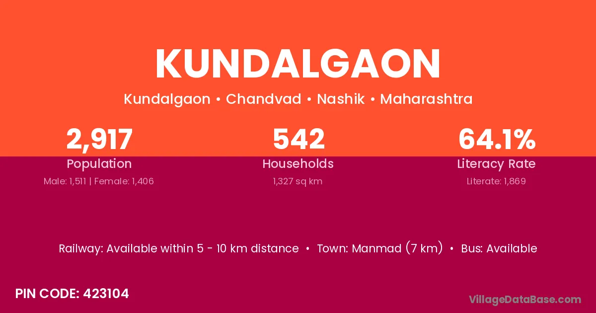 Manmad (7 km) is the nearest town to Kundalgaon village for major economic activities and is located approximately 7 km away.