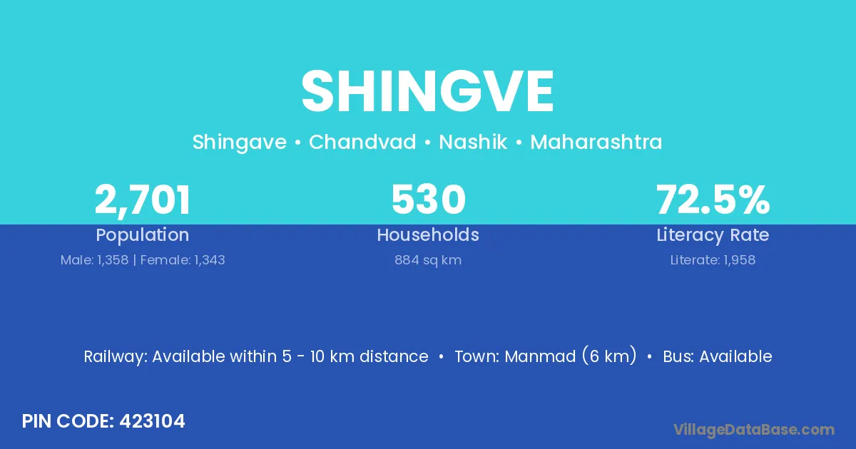 Manmad (6 km) is the nearest town to Shingve village for major economic activities and is located approximately 6 km away.
