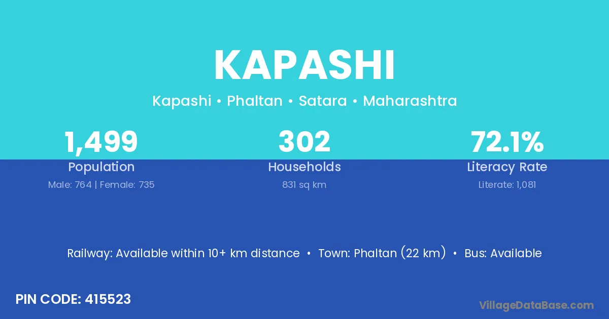 Satana (24 km) is the nearest town to Kapashi village for major economic activities and is located approximately 24 km away.