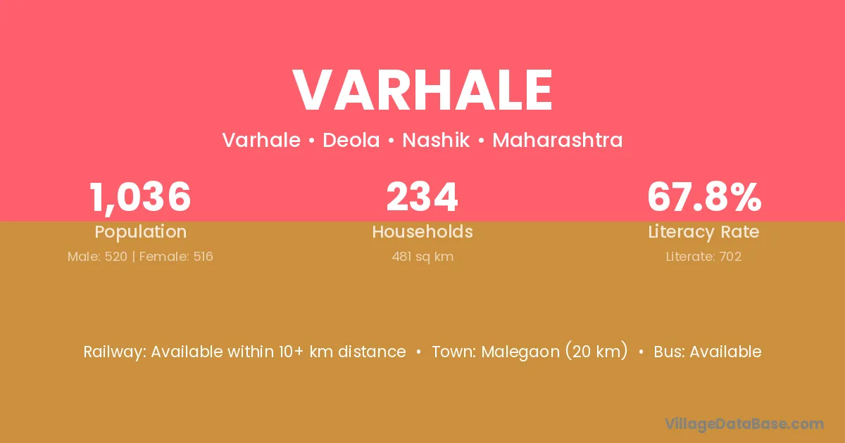 Malegaon (20 km) is the nearest town to Varhale village for major economic activities and is located approximately 20 km away.