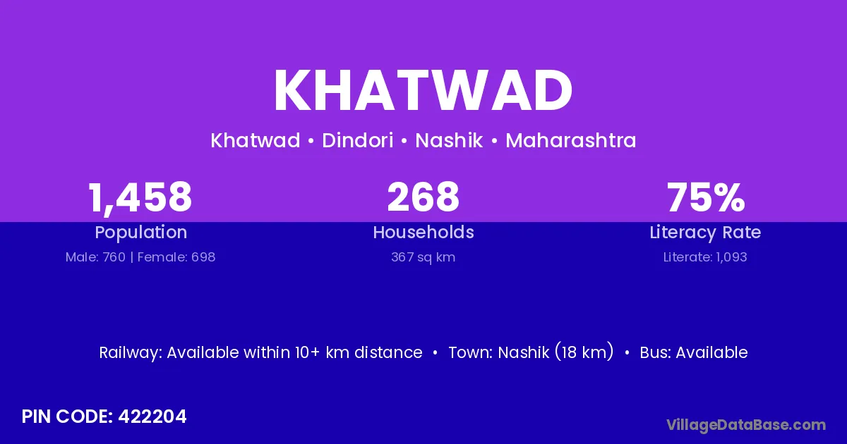 Nashik (18 km) is the nearest town to Khatwad village for major economic activities and is located approximately 18 km away.
