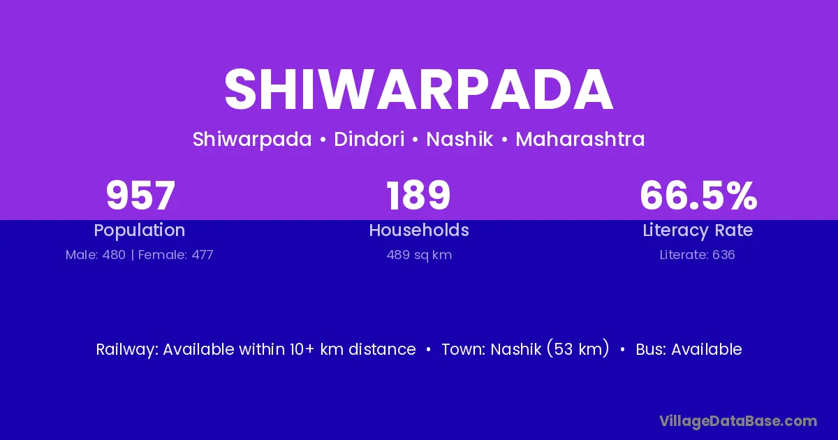 Nashik (53 km) is the nearest town to Shiwarpada village for major economic activities and is located approximately 53 km away.