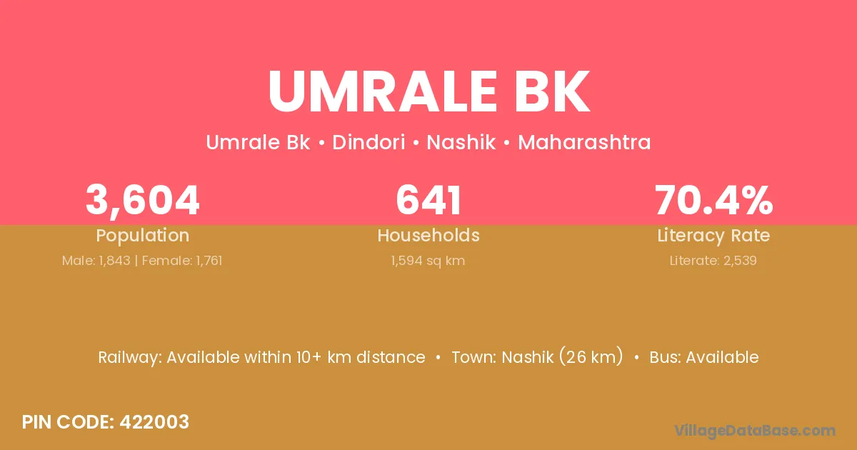 Nashik (26 km) is the nearest town to Umrale Bk village for major economic activities and is located approximately 26 km away.