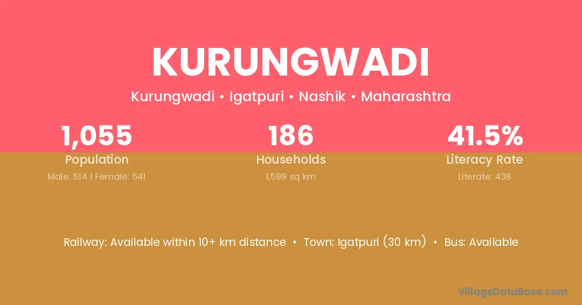 Kurungwadi village has a total population of 1,055 people, of which 514 are males and 541 are females.