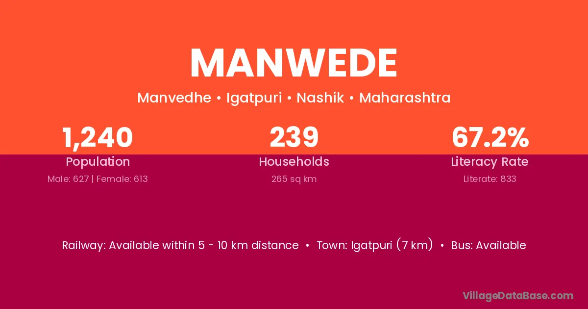 Igatpuri (7 km) is the nearest town to Manwede village for major economic activities and is located approximately 7 km away.