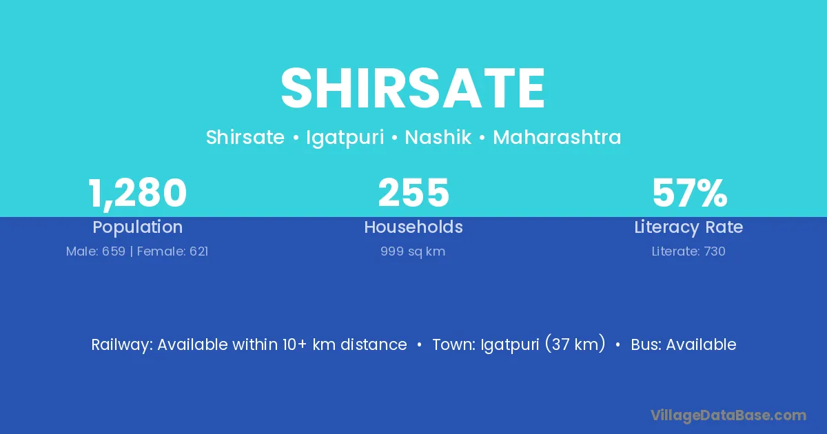 Shirsate village has a total population of 1,280 people, of which 659 are males and 621 are females.