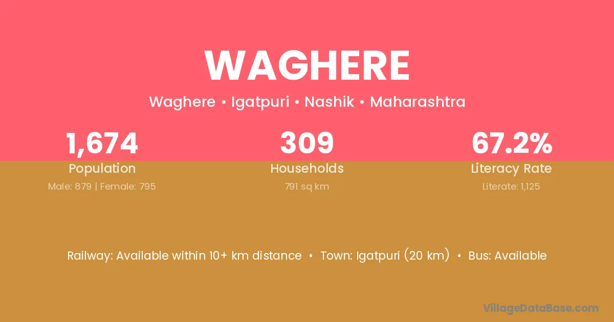 Igatpuri (20 km) is the nearest town to Waghere village for major economic activities and is located approximately 20 km away.