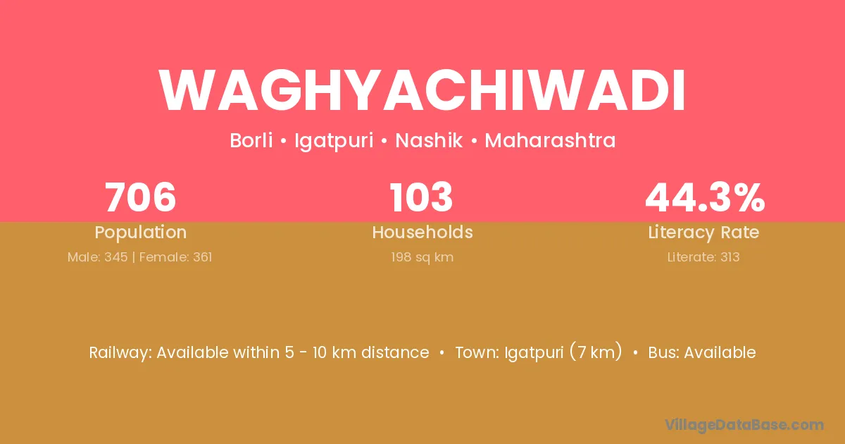 Igatpuri (7 km) is the nearest town to Waghyachiwadi village for major economic activities and is located approximately 7 km away.