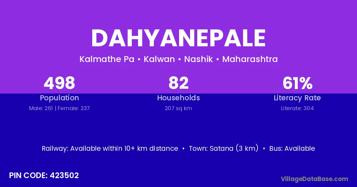 Satana (3 km) is the nearest town to Dahyanepale village for major economic activities and is located approximately 3 km away.