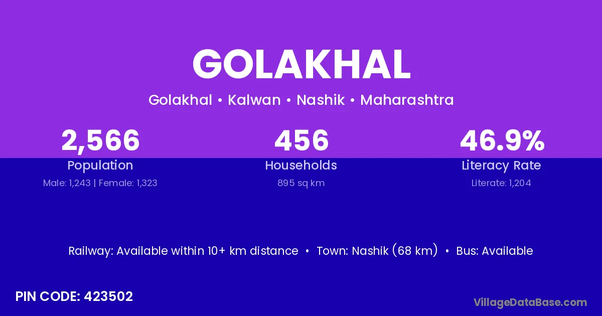 Nashik (68 km) is the nearest town to Golakhal village for major economic activities and is located approximately 68 km away.