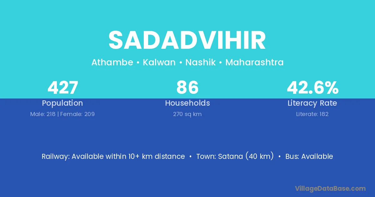 Satana (40 km) is the nearest town to Sadadvihir village for major economic activities and is located approximately 40 km away.