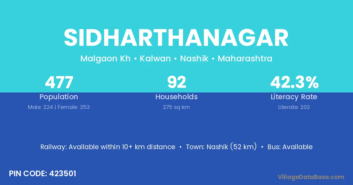 Sidharthanagar village has a total population of 477 people, of which 224 are males and 253 are females.