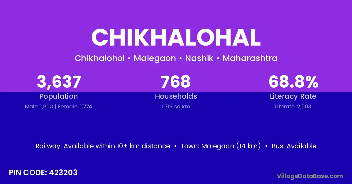 Malegaon (14 km) is the nearest town to Chikhalohal village for major economic activities and is located approximately 14 km away.